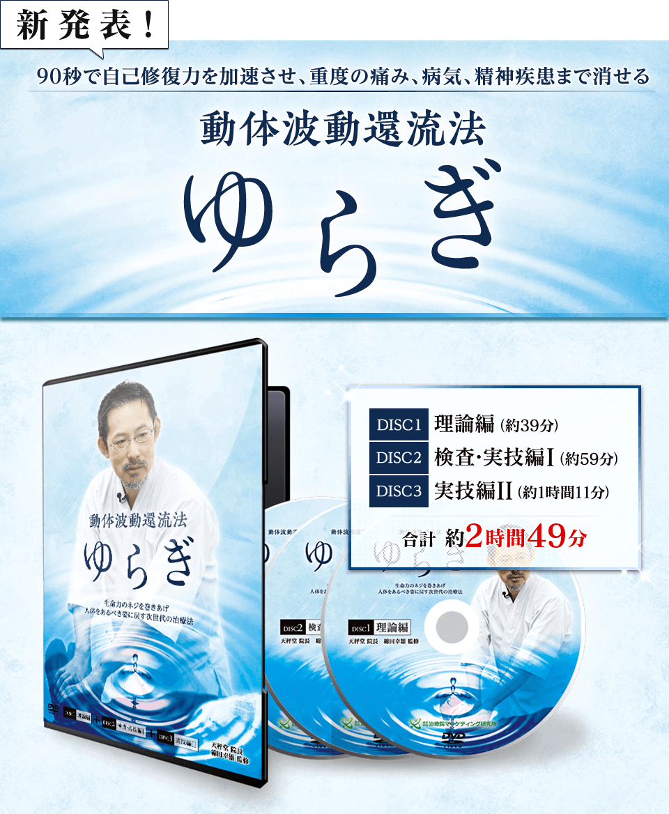 | 90秒で自己修復力を加速させ、どんな痛みも消す治療法『動体波動還流法~ゆらぎ~』DVD(監修:綿田幸雄) | 約30%OFF、 17,000円もお得な 29,900円(税抜) |