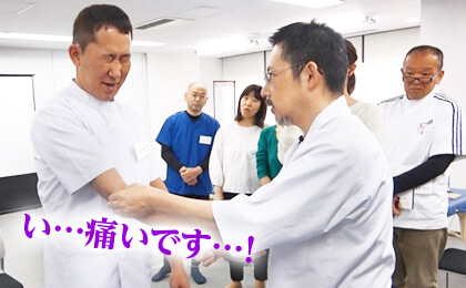 この手技の技術習得セミナーでは、その場でテニス肘の激痛が消失!