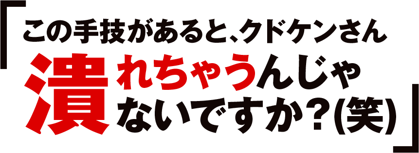 あまりの衝撃に、参加者が「この手技が出たらクドケンさん潰れるんじゃないですか(笑)」とつい言ってしまったのも無理はありません。